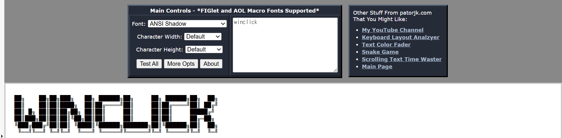 개인적인 취미와 일부의 업무적 성격으로 윈도우 콘솔 프로그램을 많이 만들고 사용한다. 특히 윈도우 배치 파일도 자주 만들고 사용하는데 이것이 본디 콘솔 프로그램이다 보니 이과 감성의 출력을 보이는데 그나마 좀 있어 보이는 외관을 위해 배너를 출력하는데 사용한다.
